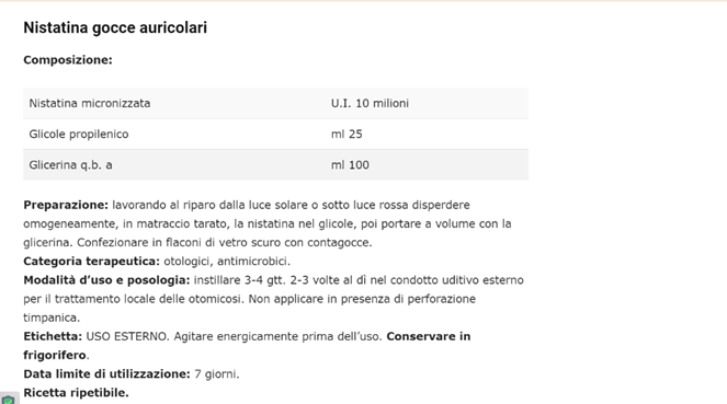 Figure 7: From https://www.farmacianews.it/gocce-auricolari/ NISTATIN ear drops for some fungal infections